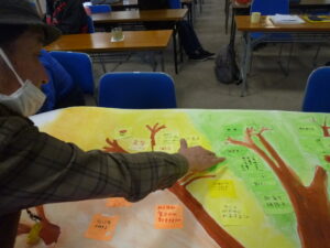 「デイケアの象徴のシンボルとして、生命の樹になりました。皆の想いを具現化した作品ができました。」
